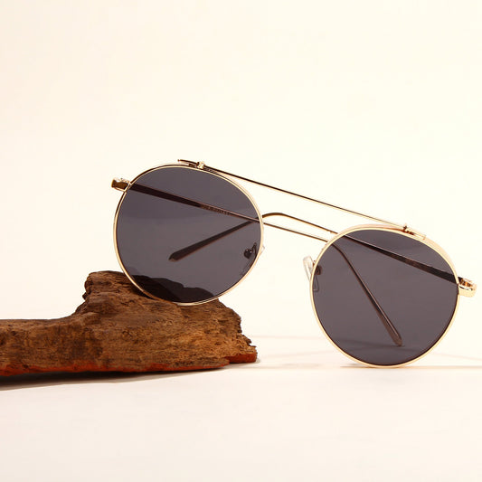 Classy Round Brown And Gold Sunglasses